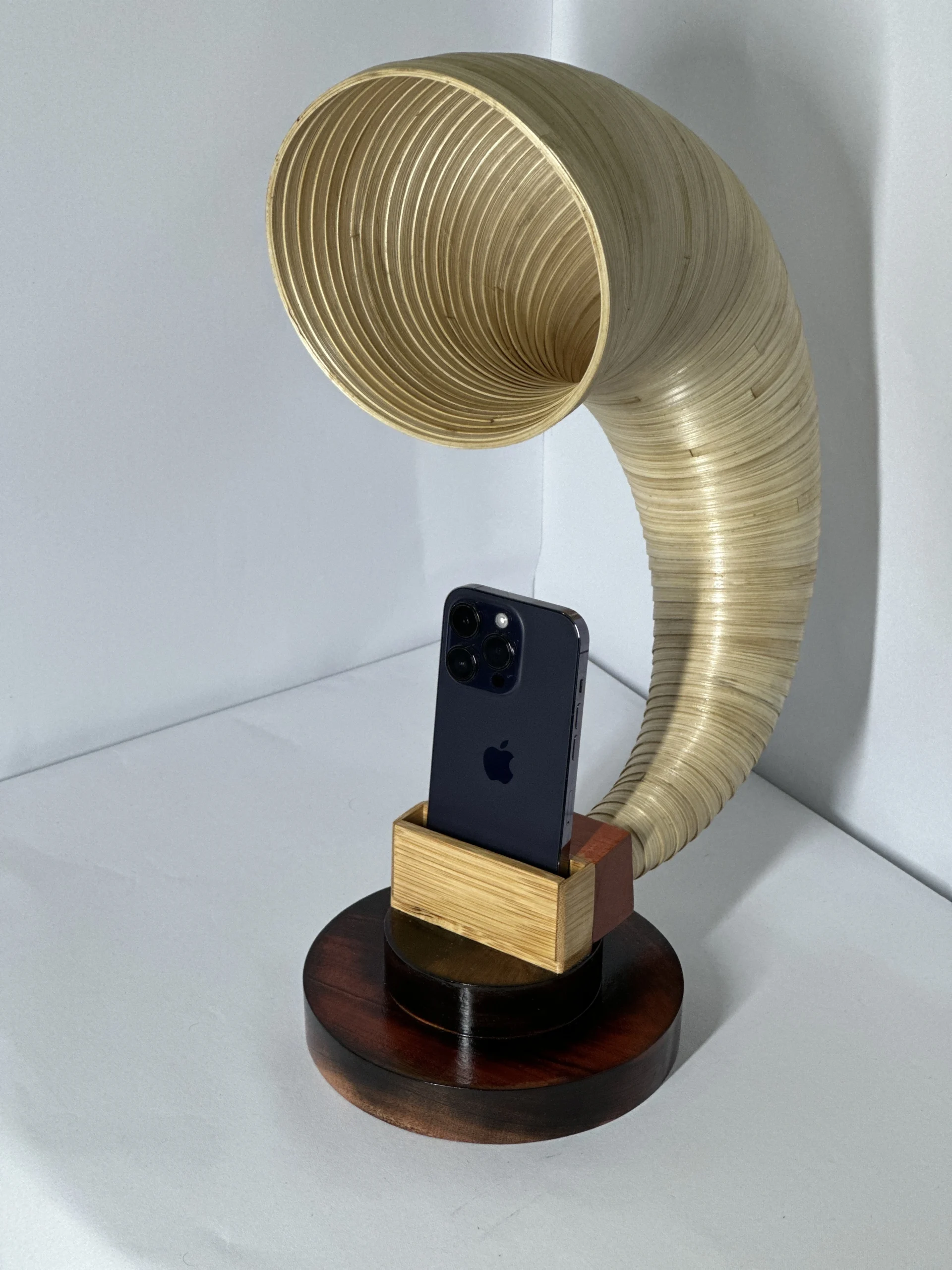 لا أسلاك، لا بطاريات - صوت نقي وطبيعي. هذه السماعة المحمولة الصديقة للبيئة مصنوعة يدويًا من الخيزران، لتضخيم صوت هاتفك بشكل طبيعي. مثالية للمنزل، العمل، أو السفر.