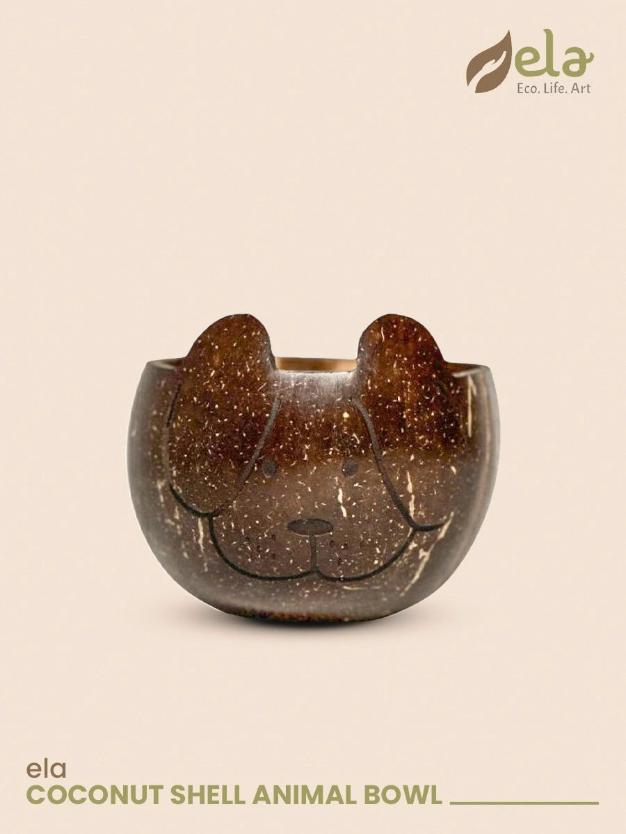 A fun and eco-friendly bowl shaped like a dog, handcrafted from real coconut shell. Perfect for kids’ snacks, gifting, or decor with a playful touch of nature.