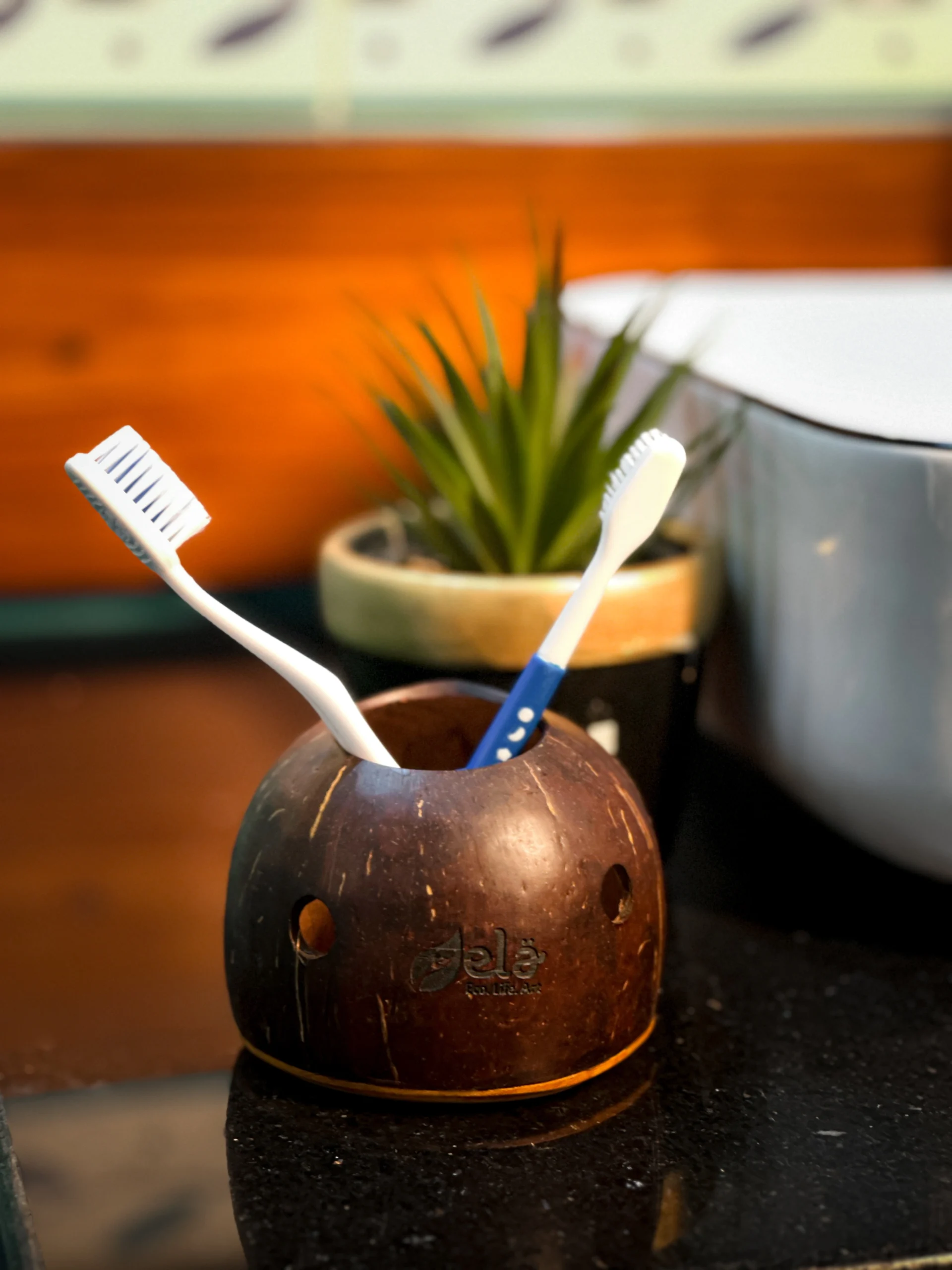Eco-Friendly Coconut Shell Toothbrush Holder